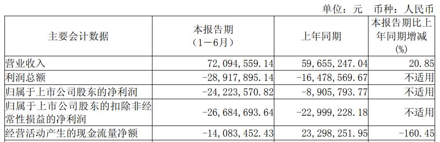 2024年,公司实现营业收入1.28亿元,同比下降16.73%;归属于上市公司股东的净利润为-5441.63万元,上年同期为1284.36万元;归属于上市公司股东的扣除非经常性损益的净利润为-7174.86万元,上年同期为-721.06万元;经营活动产生的现金流量净额为1331.58万元,同比下降80.75%