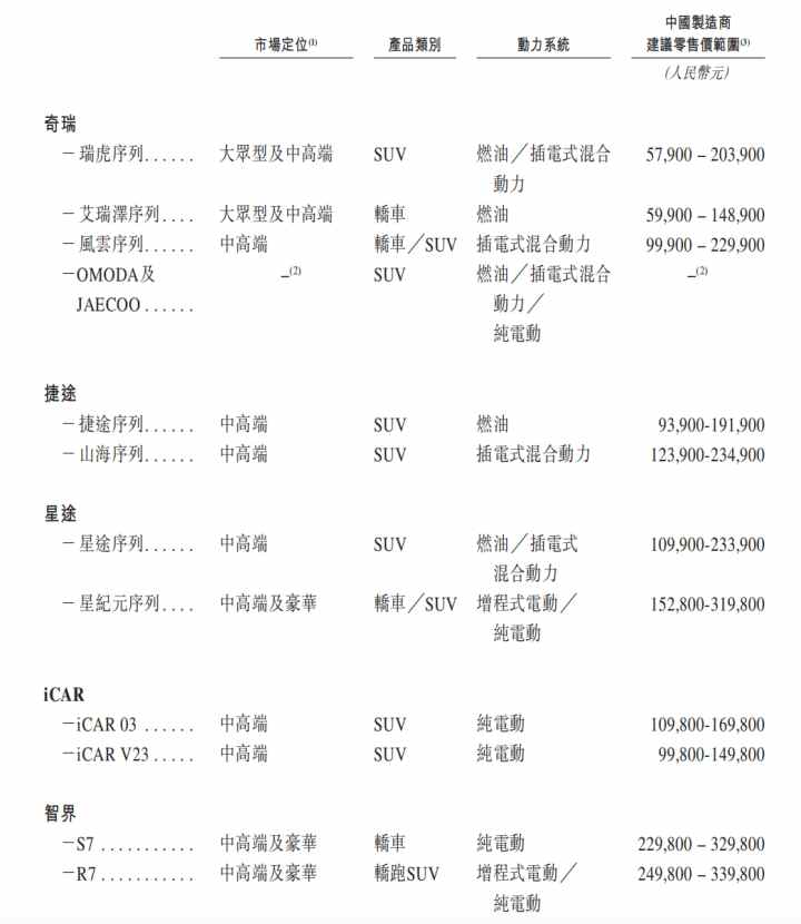 捷途品牌聚焦越野旅行汽车市场,精准定位目标用户;星途品牌主打科技新豪华,为追求性能和品质的用户提供优质出行体验;iCAR品牌面向热衷科技和自由的Z世代客户,带来前沿智趣出行感受;智界品牌专注于高端智能新能源汽车领域,满足追求智能化、高性能的用户需求。