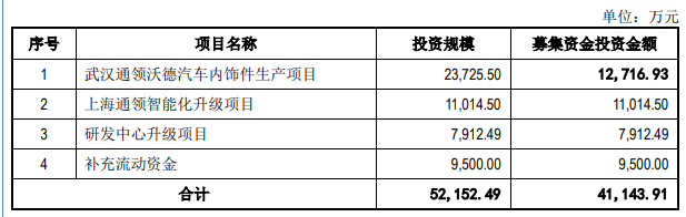 通领科技拟在北交所募集资金41,143.91万元,用于武汉通领沃德汽车内饰件生产项目、上海通领智能化升级项目、研发中心升级项目、补充流动资金。