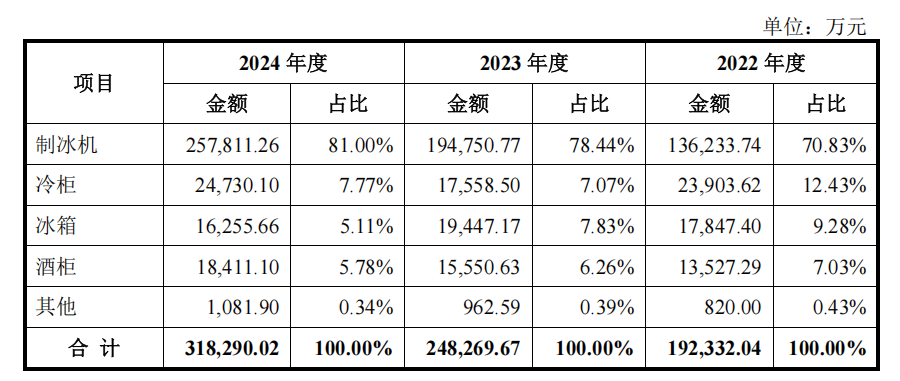 招股书显示,惠康科技深耕制冷领域,是一家以制冷设备的研发、生产及销售为核心业务的国家级高新技术企业,主要产品包括制冰机、冰箱、冷柜、酒柜等,主要应用于民用及商用领域。